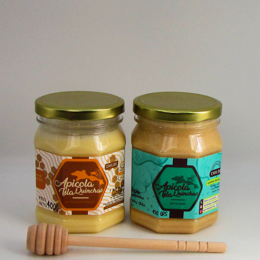 Pack miel Batida 400 grs + Miel de flora nativa 500 grs + Palito mielero